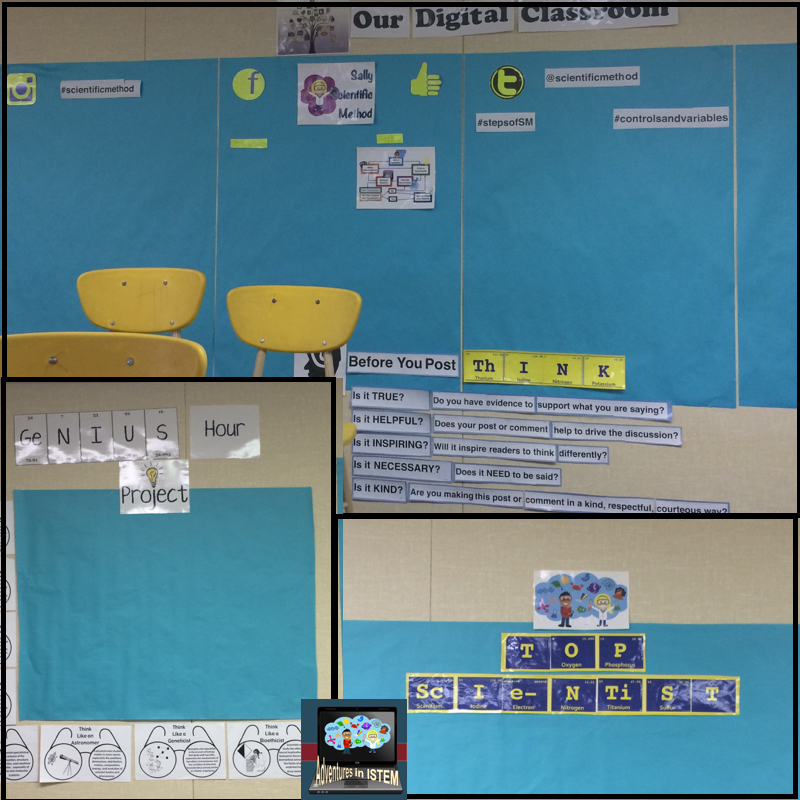 I also have a board that reminds students about digital citizenship and technology rules. We use technology a few times a week and so it is important that my students know about digital citizenship and practice it. My last boards help students with the common core literacy science standards by helping them with their academic vocabulary and showing them how to support their claims with evidence.