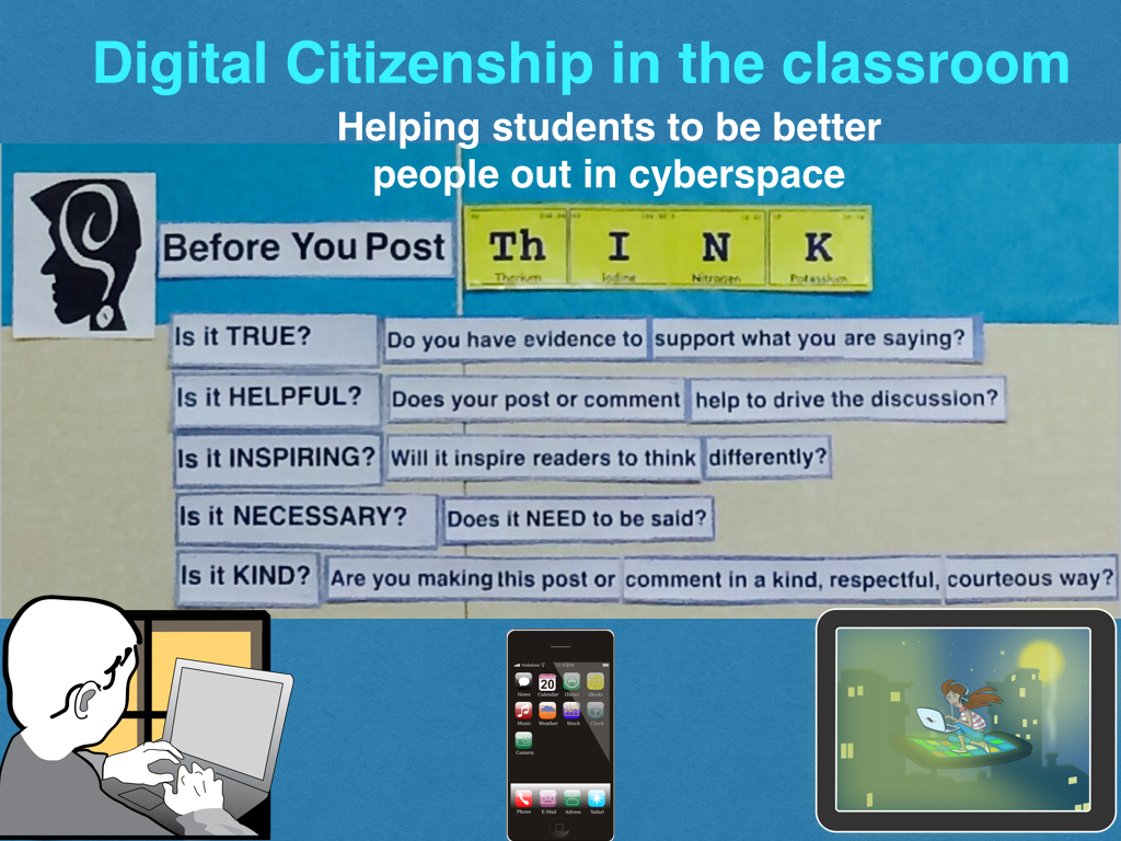 This is why it is so important to teach students digital citizenship in the classroom and beyond. I love the saying that I see in a lot of classrooms called THINK. T– Is it True? Do you have evidence to support what you are saying? H– Is it Helpful? Does your post or comment help to drive the discussion? I– Is it Inspiring? Will it inspire readers to think differently? N– Is it Necessary? Does it need to be seed? K– Is it Kind? Are you making this post or comment in a kind, respectful, courteous way? Students need to know that when they are posting comments whether in a classroom setting or on social media that there is someone else on the other side of the computer that has feelings. Posting is a reflection of who they are and who they want to be. If they are posting negative comments about people or their ideas than it reflects negatively back on them.